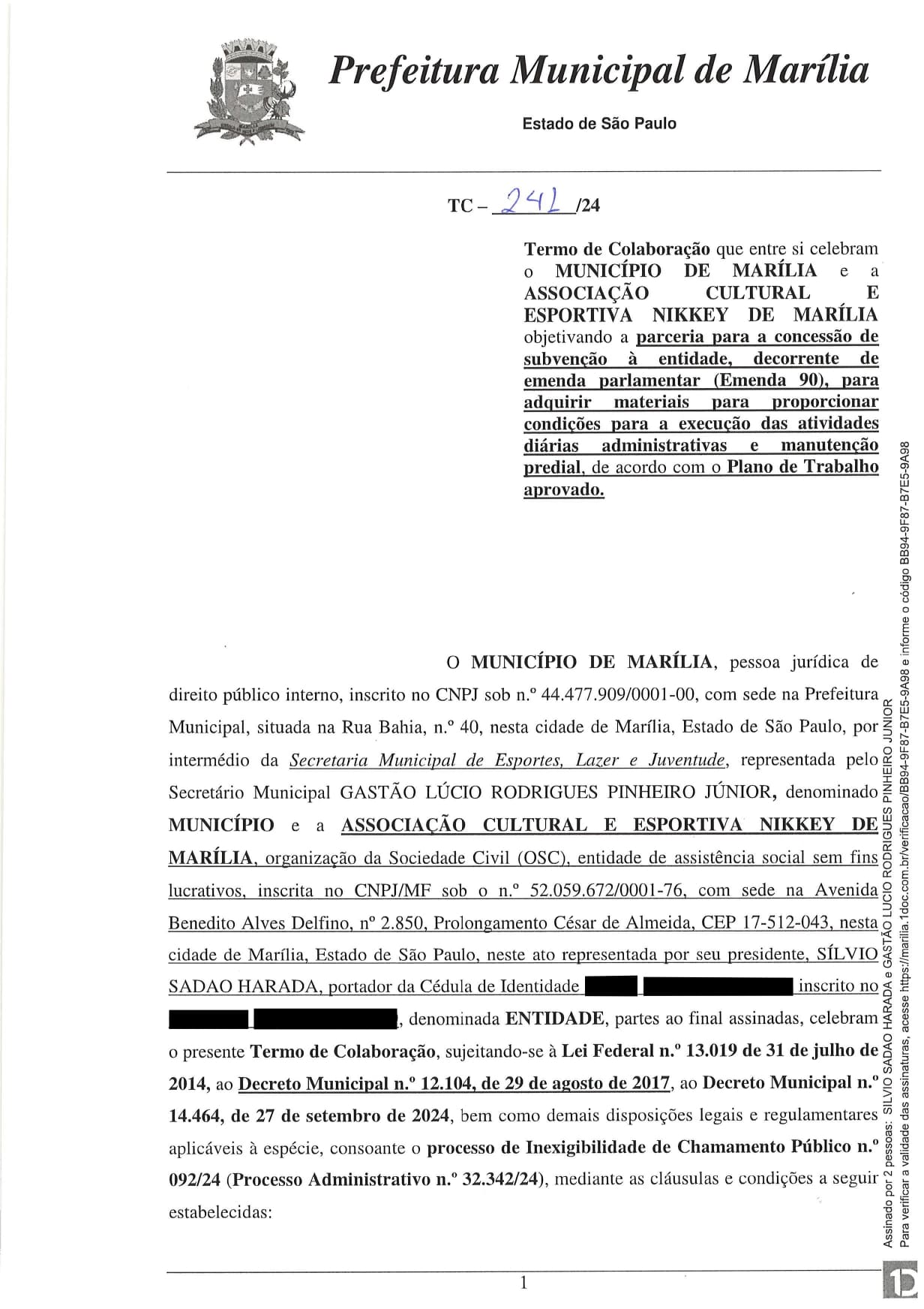 Termo de Colaboração 241/2024