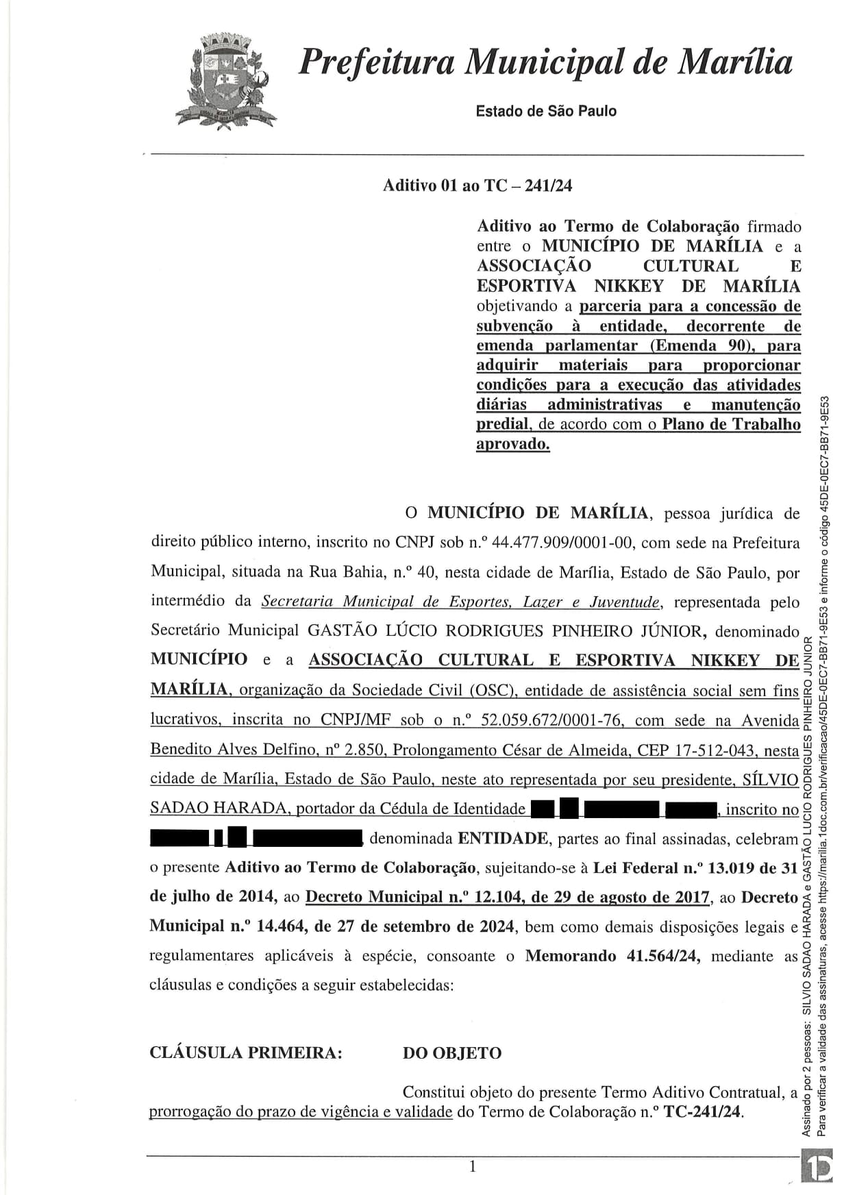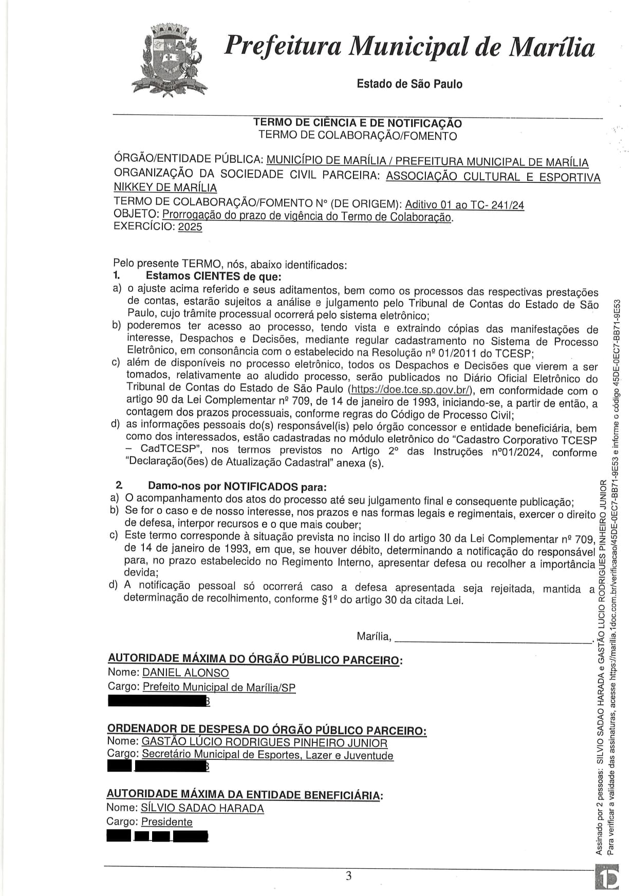 Termo de Colaboração 241/2024 - ADITIVO 01
