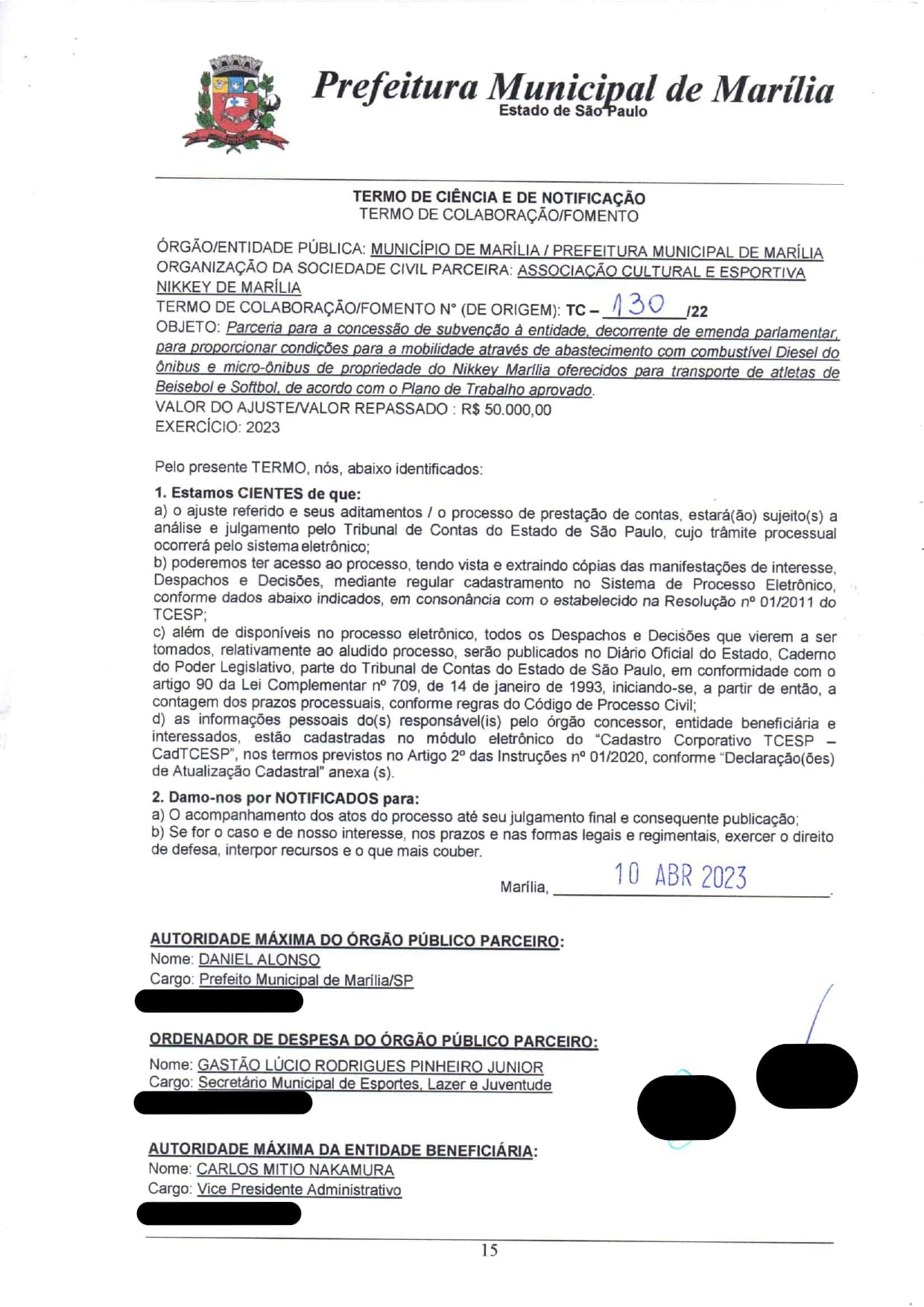 Termo de Colaboração 130/2023