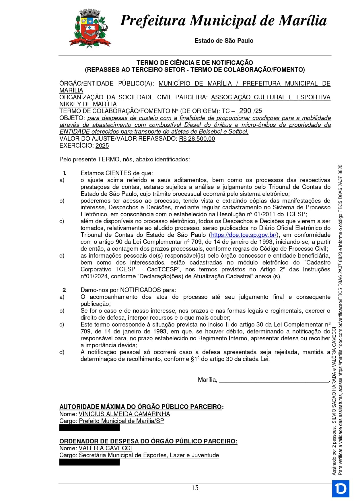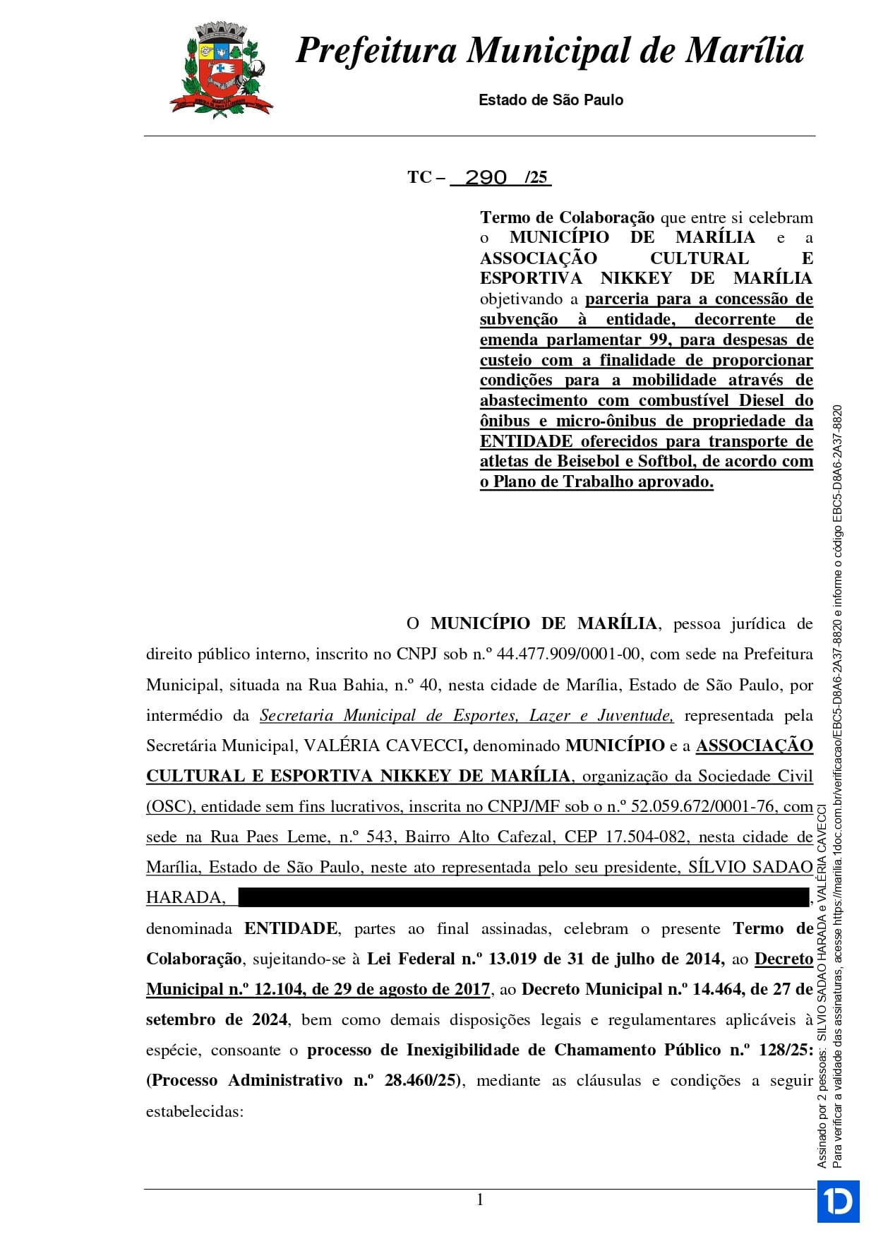 Termo de Colaboração 290/2025