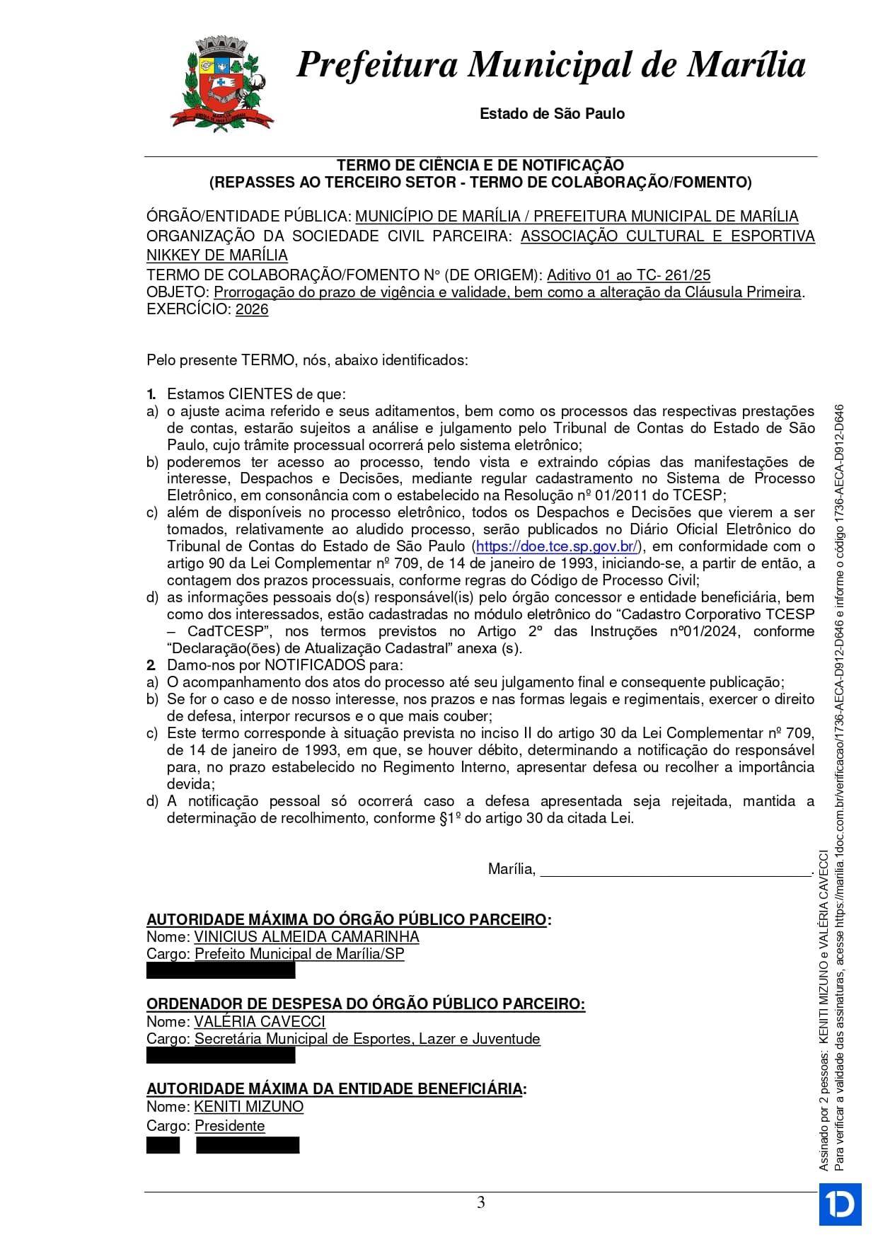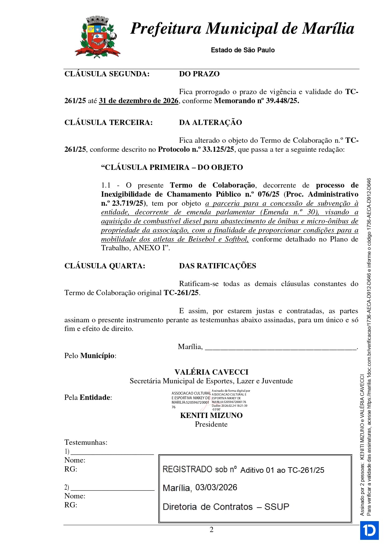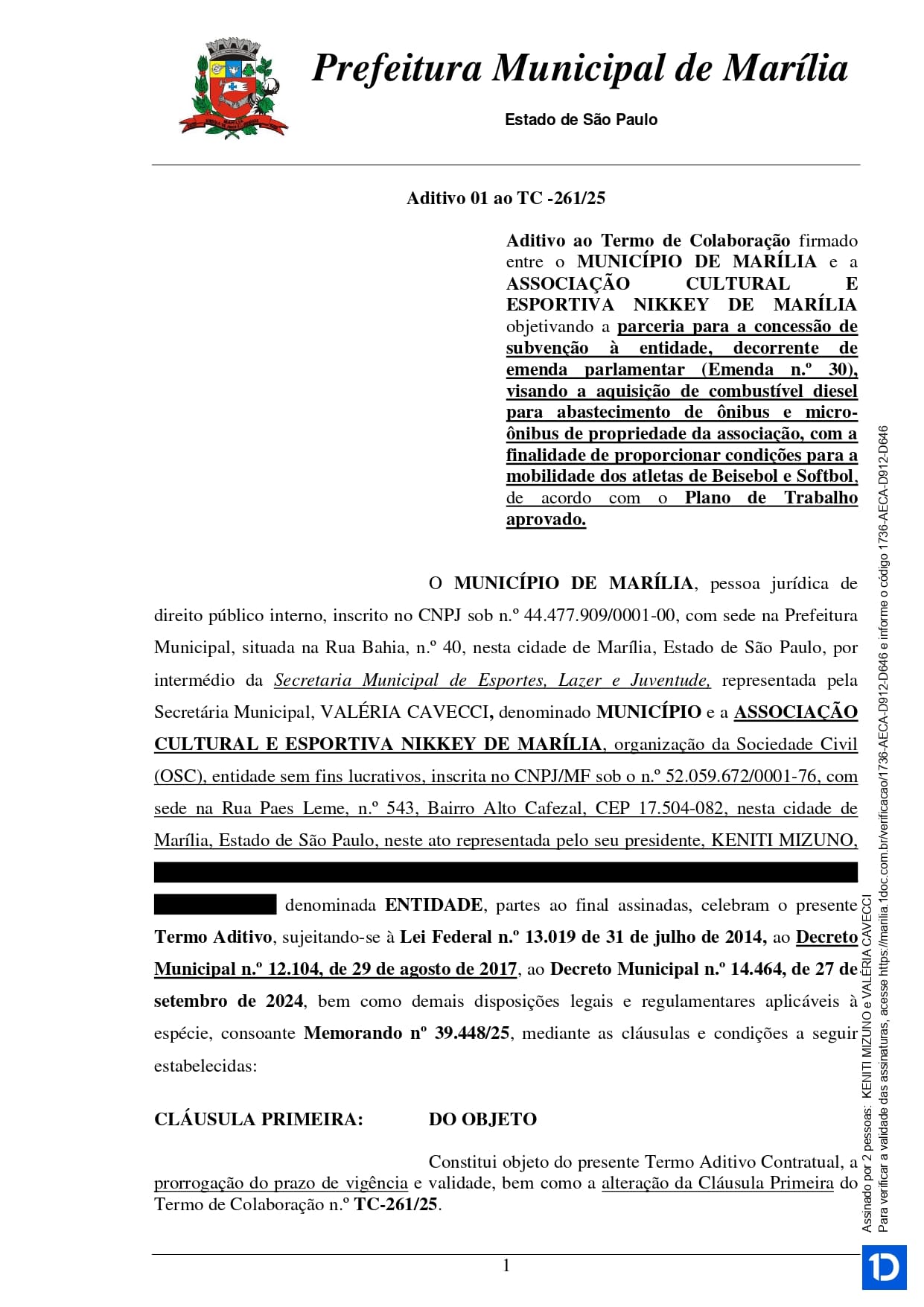 Termo de Colaboração 261 - Aditivo 01